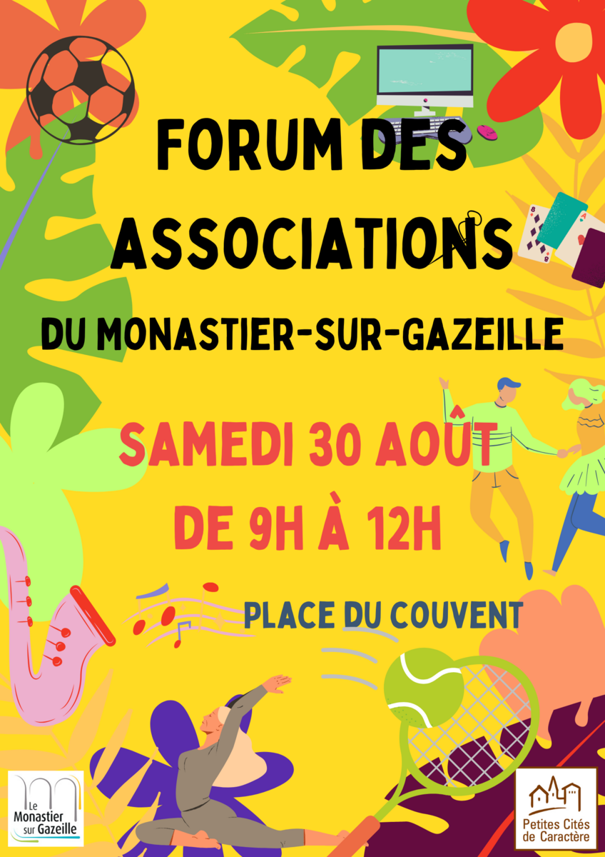 Samedi 30 Août, de 9h à 12h sur la Place du Couvent : Forum des Associations du Monastier.