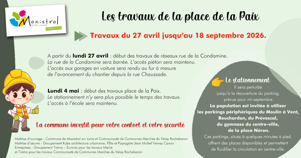 âś” Lundi 4 mai : dĂ©but des travaux place de la Paix.Â