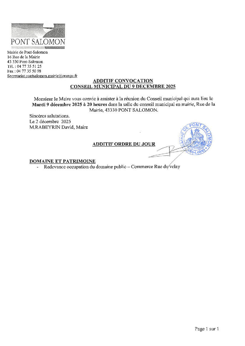 Le prochain conseil municipal aura lieu le mardi 9 décembre 2025 à 20 heures. Veuillez trouver ci-joint l'ordre du jour.