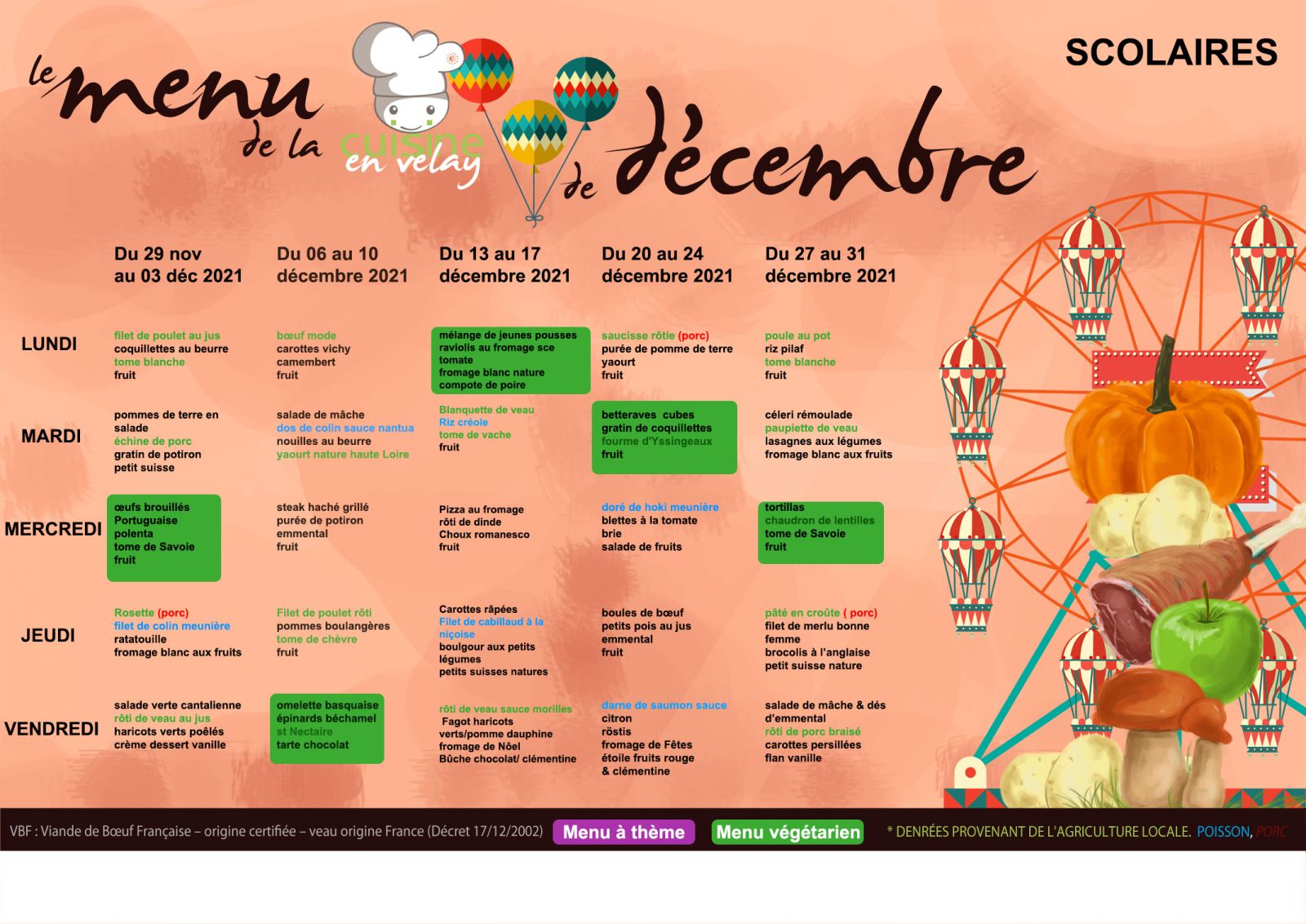 Retrouvez les menus scolaires pour tout le mois de décembre en cliquant ici: https://bit.ly/2ZRs3L9