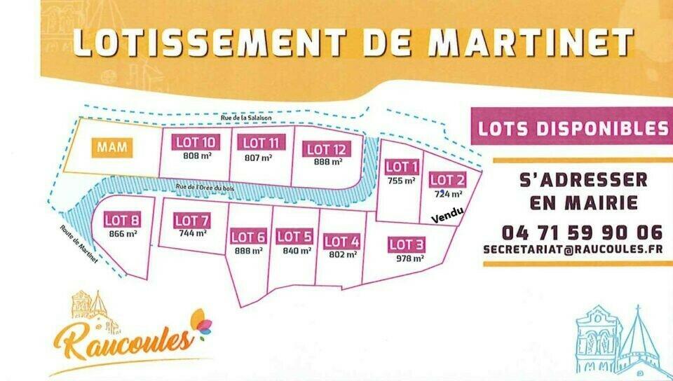 La commune de Raucoules annonce la mise en vente de 10 lots dans le lotissement « de Martinet ». Ces terrains viabilisés, idéals pour la construction de maisons individuelles, offrent une belle opportunité pour les familles souhaitant s’installer dans un cadre de vie paisible.