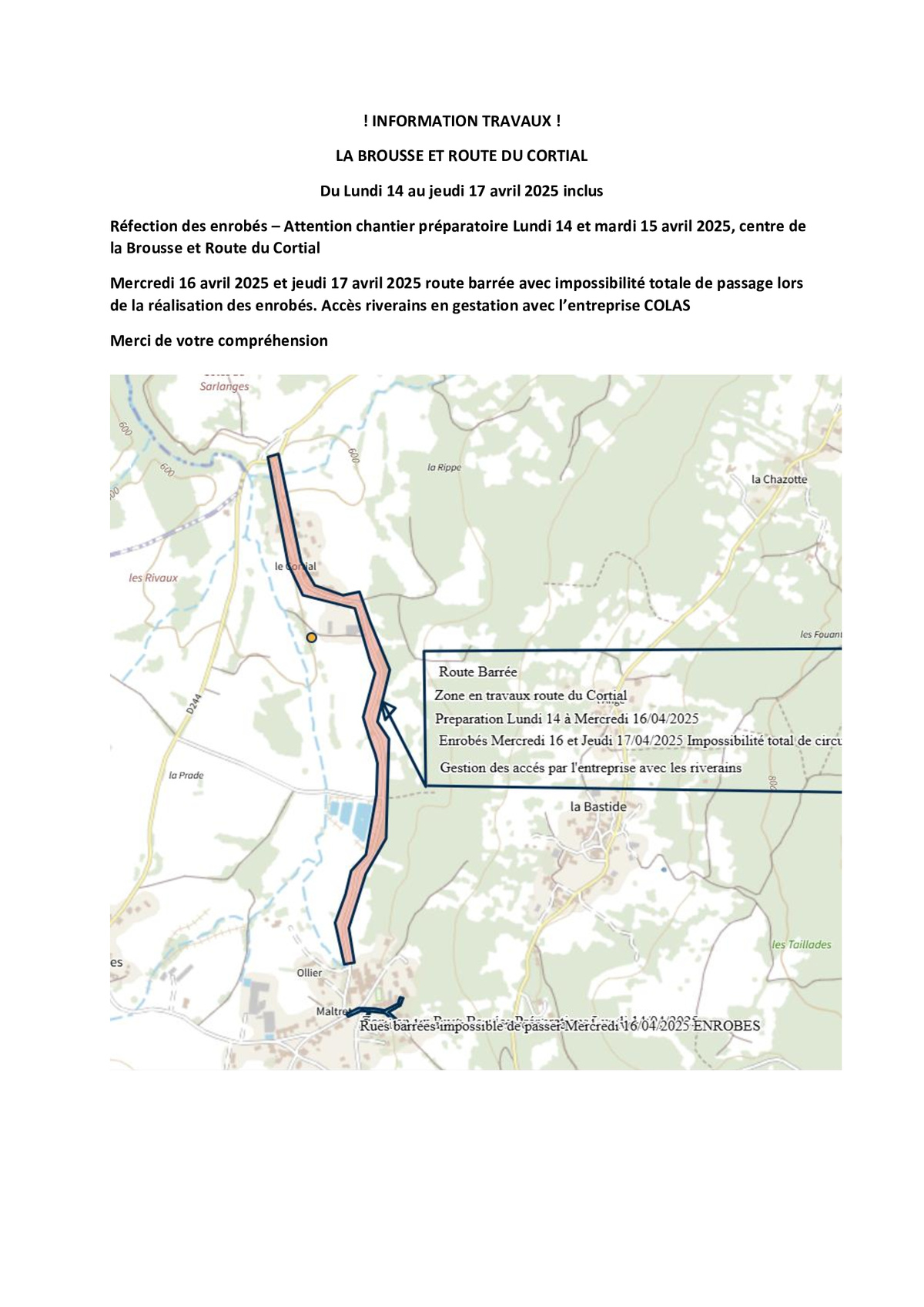 / INFO : TRAVAUX REFECTION VOIRIE - LA BROUSSE ET LE CORTIAL