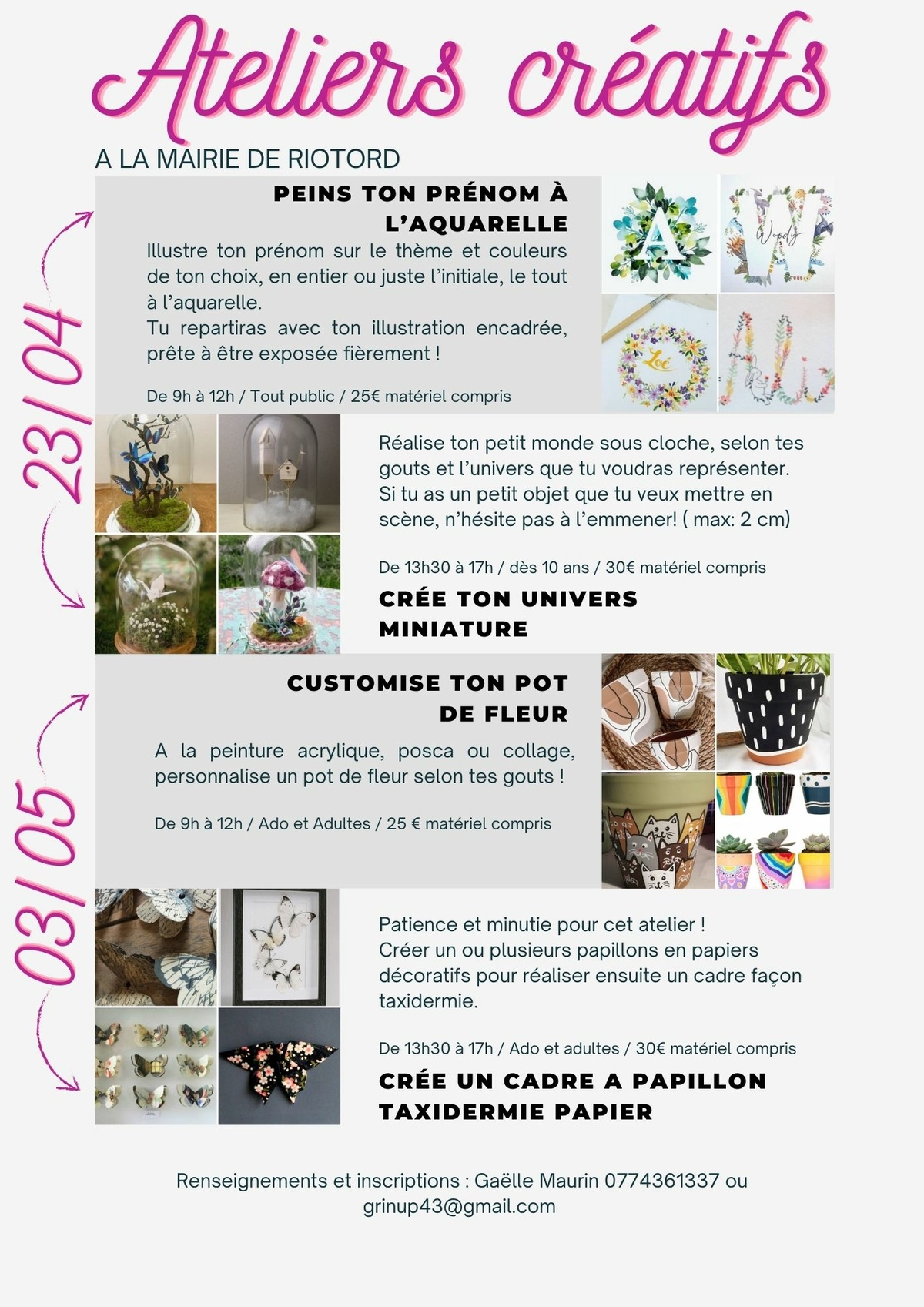 / 😀 Ateliers créatifs : le 23/04 et le 03/05 🎨