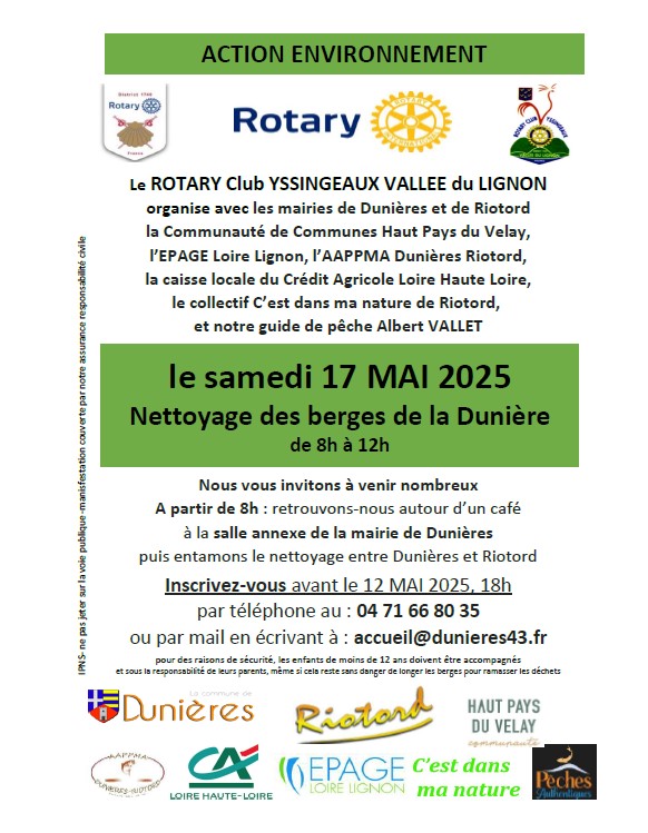 / 📌Rotary club :Nettoyage des berges de la Dunières 17 mai🙂