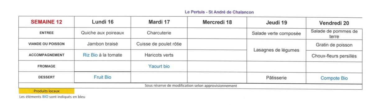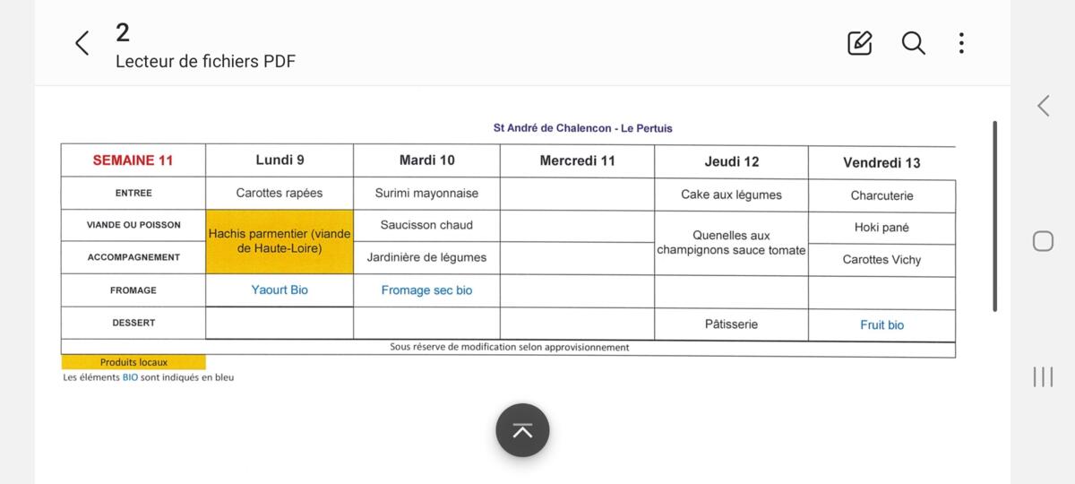 Menu cantine