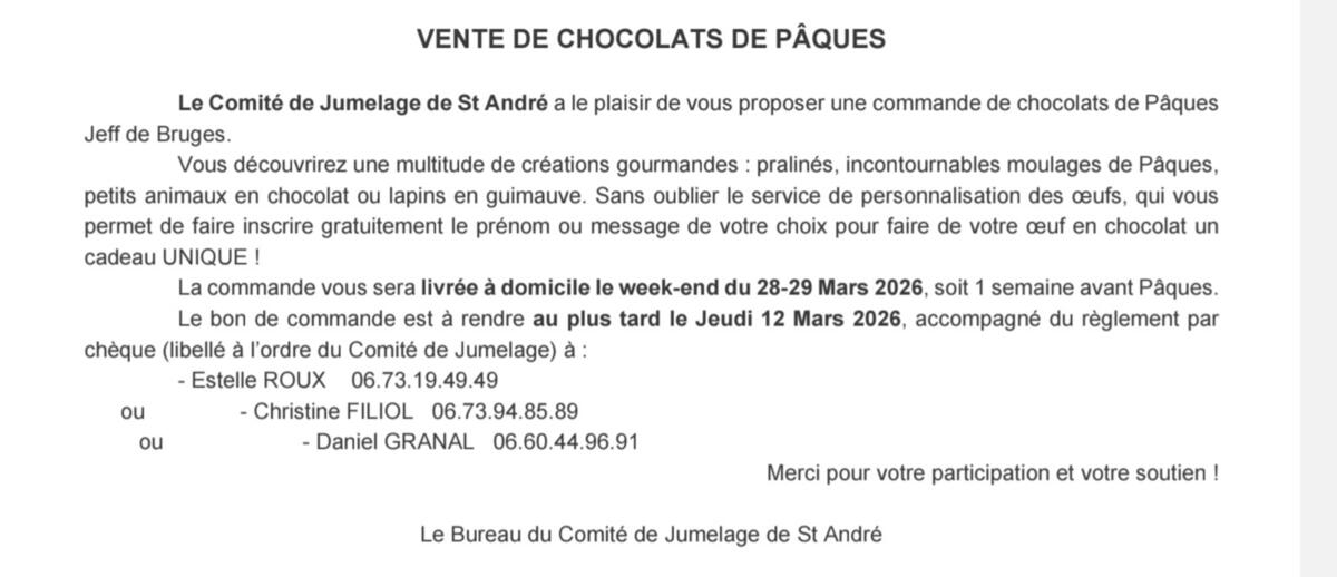 Chocolat de Pacques du Comité de jumelage