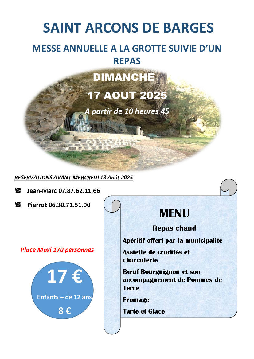 MESSE ANNUELLE Á LA GROTTE LE 17/08/2025