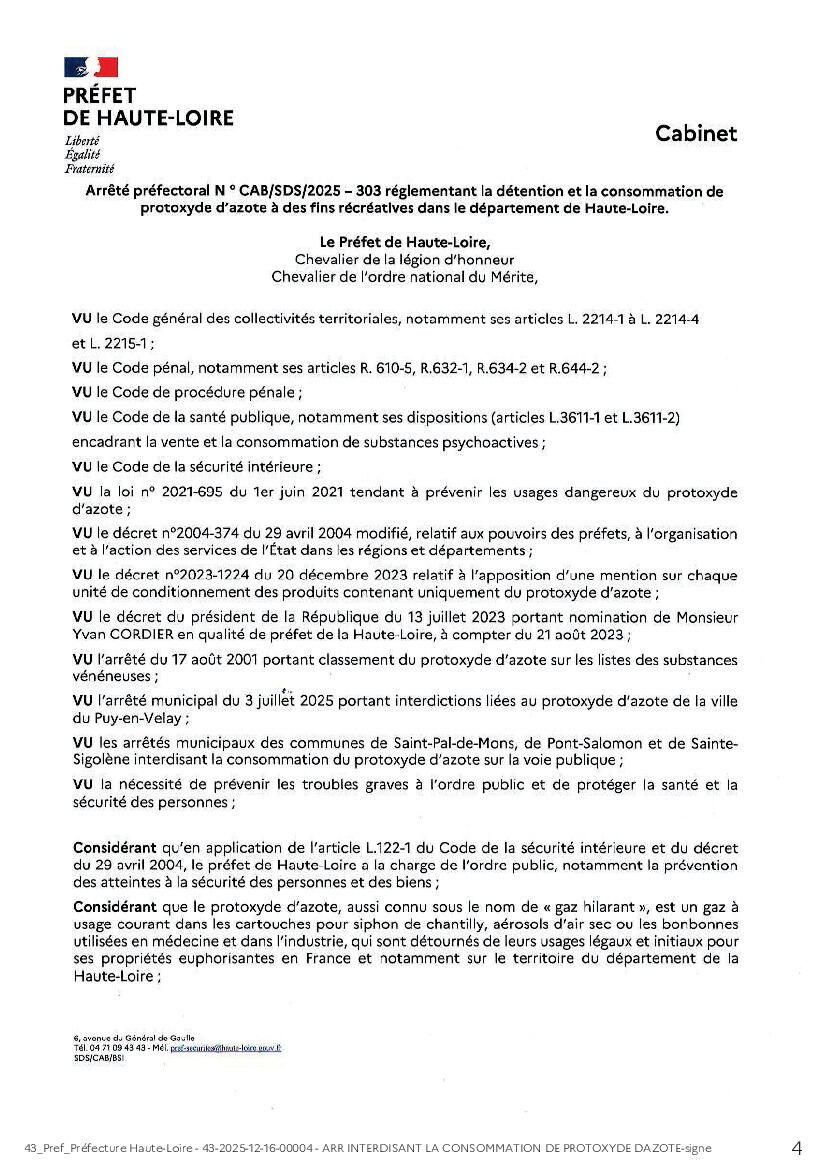 ARRÊTÉ INTERDISANT LA CONSOMMATION DE PROTOXYDE D'AZOTE