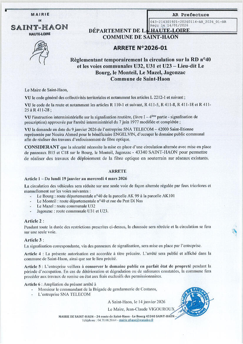 Su ayuntamiento / Noticias / TRAVAUX DE DÉPLOIEMENT D'UN RÉSEAU DE FIBRE OPTIQUE
