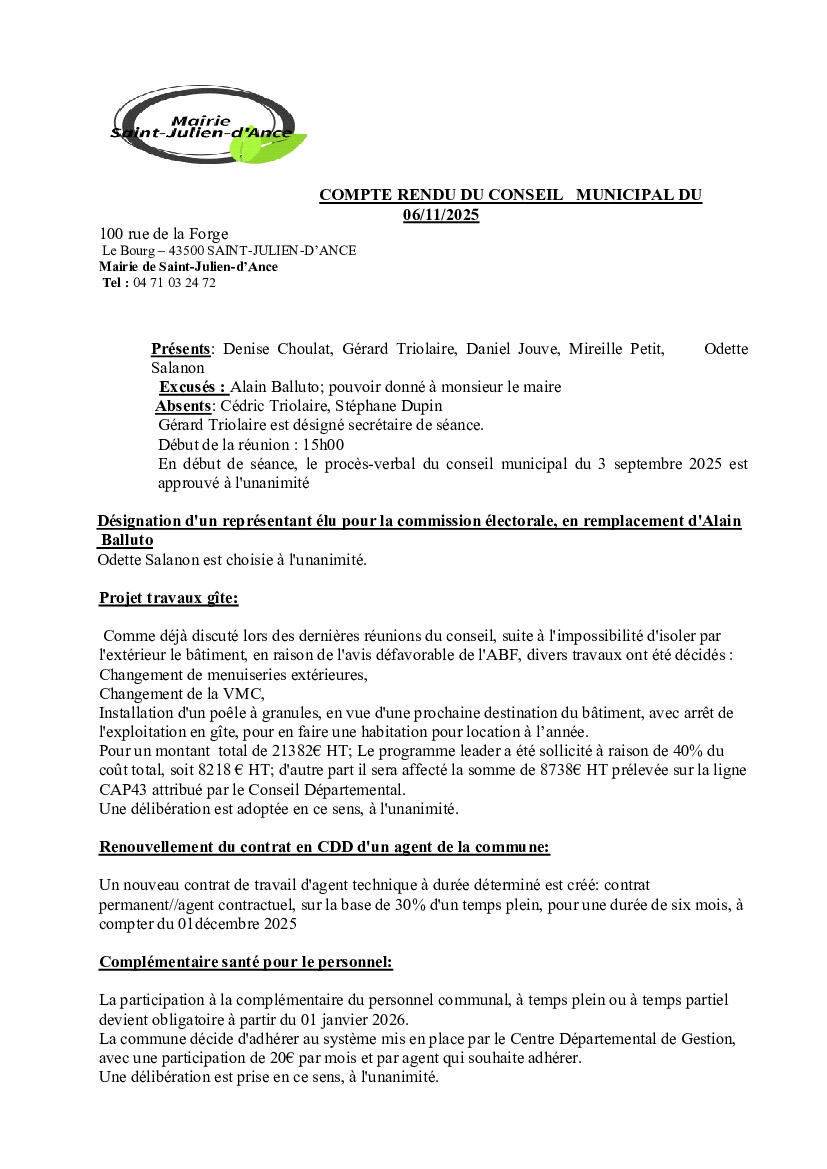 Compte-rendu du conseil municipal du 6 novembre 2025