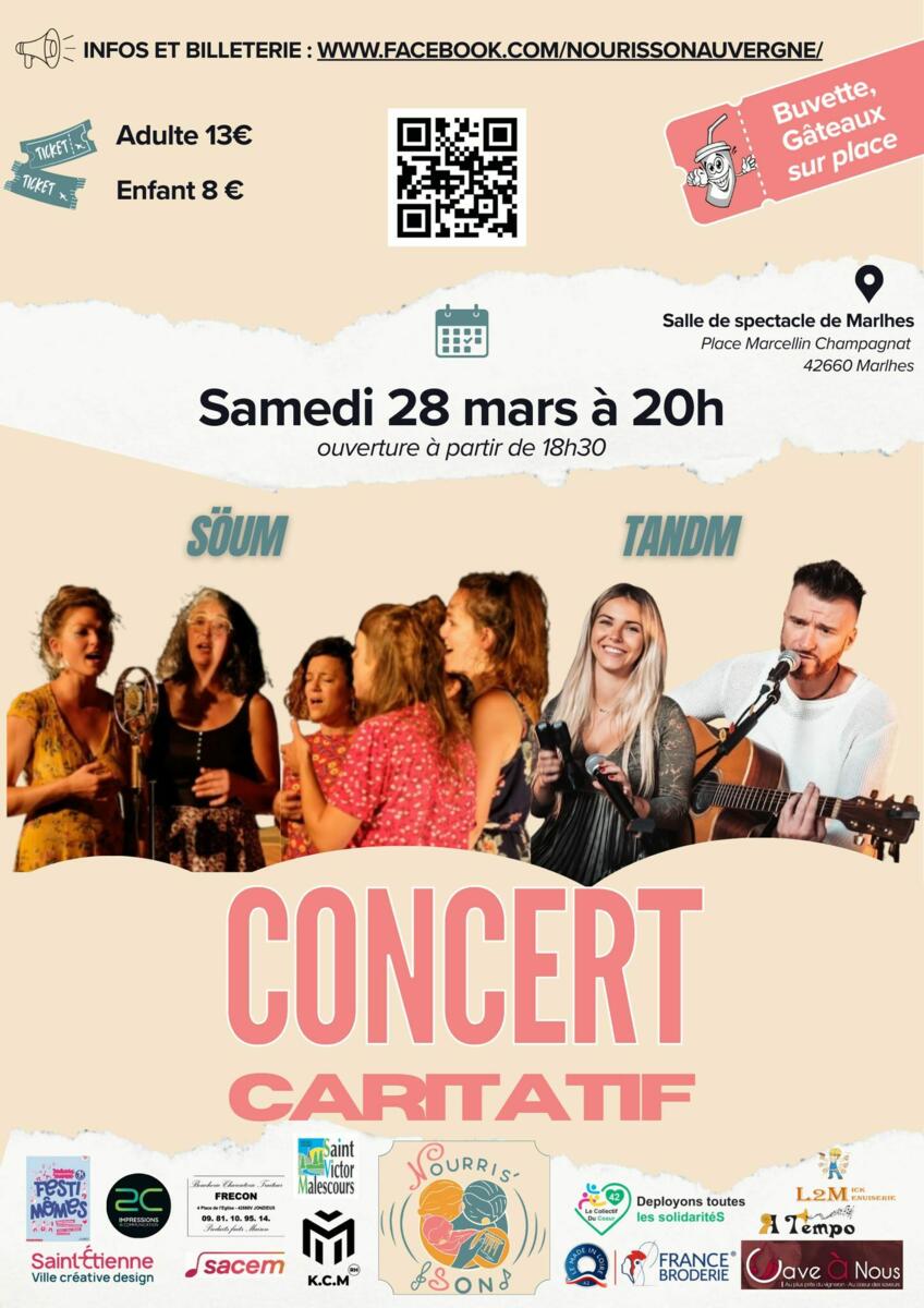 L'association NOURRISS'SON organise un concert caritatif au profit des nouveaux-nés hospitalisés en néonatalogie, avec la participation des groupes SOUM et TANDM pour une soirée musicale et solidaire :