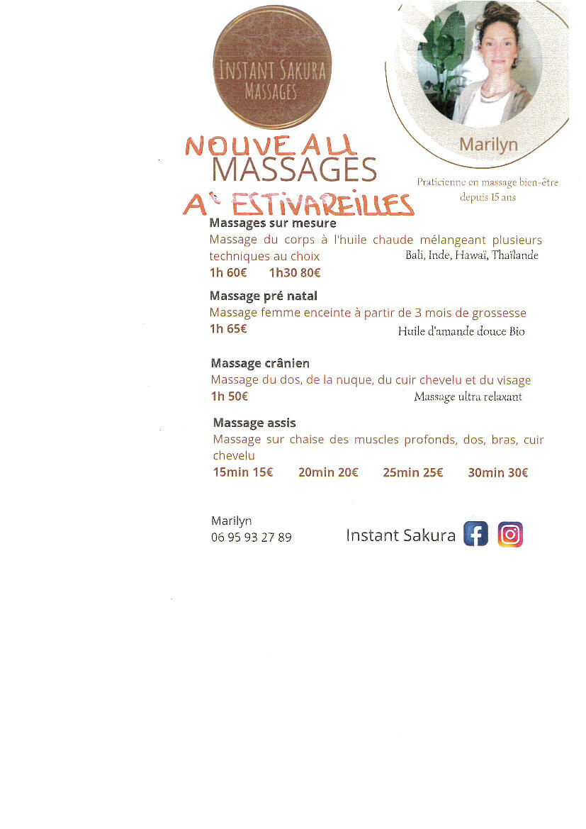 Massages, instant SAKURA, proposés par Marilyn