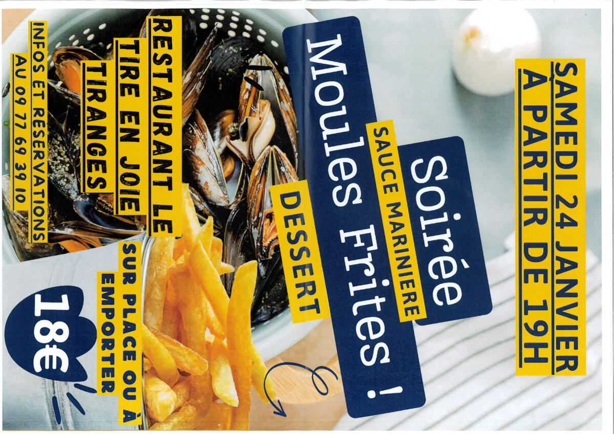Su ayuntamiento / Noticias / Soirée Moules Frites, restaurant Le Tire en Joie à Tiranges