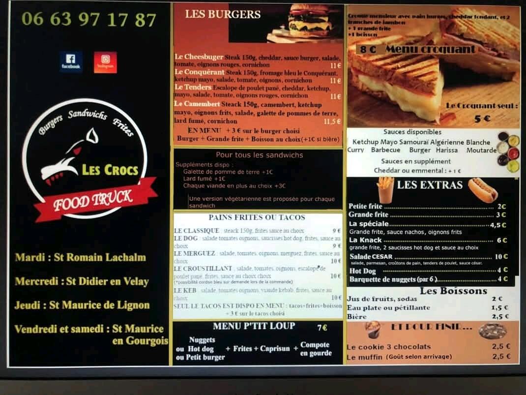 Le food truck "Les crocs" sera présent tous les Dimanches de 17h00 à 21h00 sur la Place de l'Eglise à Saint-Pal-de-Mons. Il s'installera à partir du Dimanche 6 Juillet.