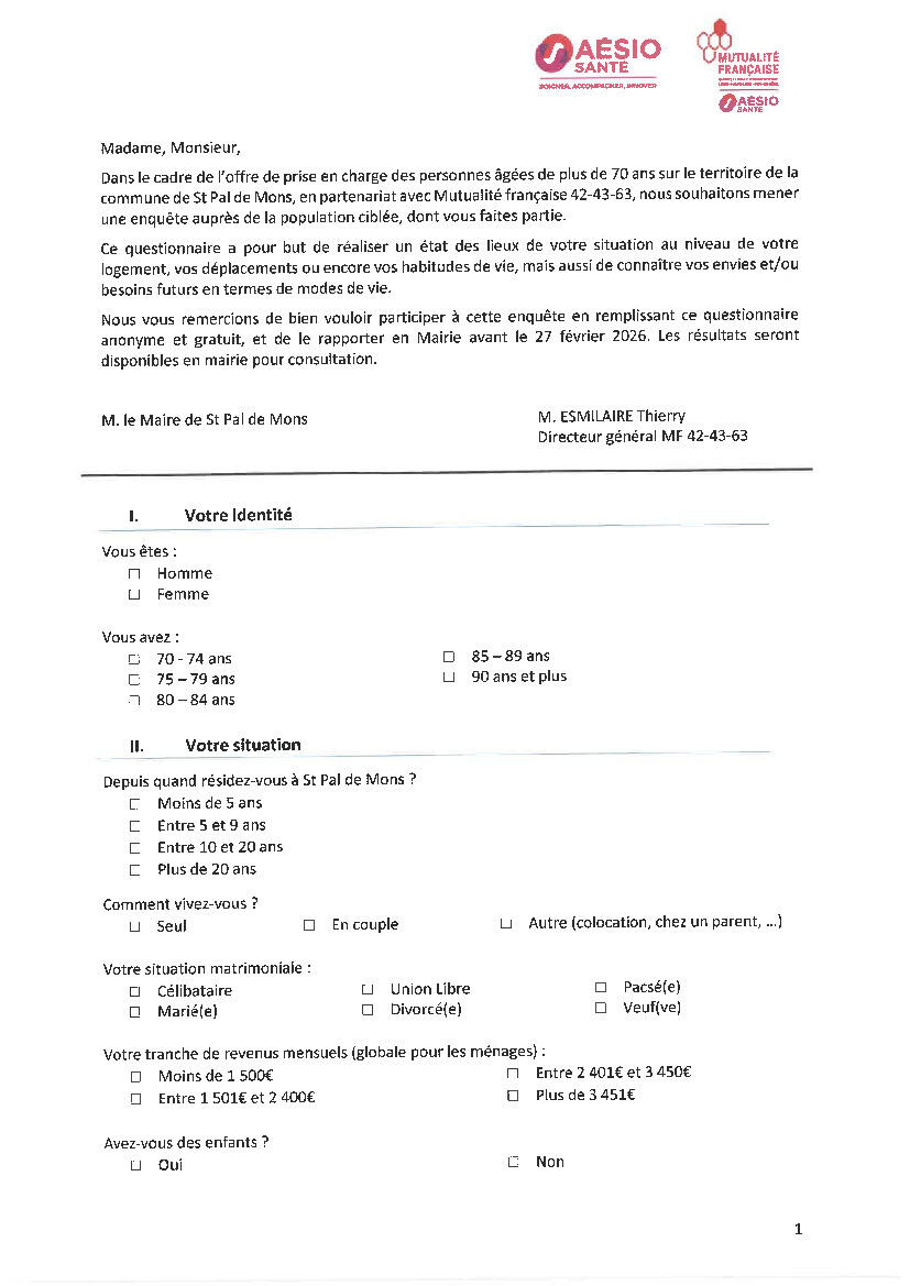 La commune a récemment distribué un questionnaire aux personnes âgées de 70 ans et plus concernant l’offre de prise en charge des seniors, réalisé en partenariat avec la Mutualité française.