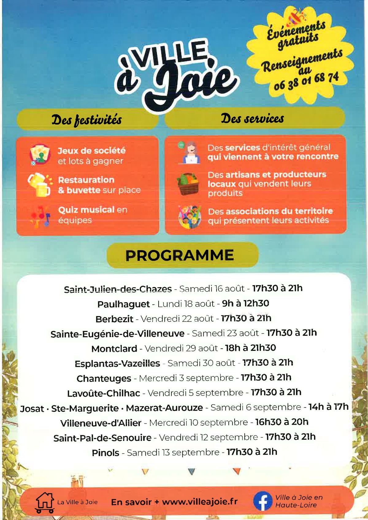 EVENEMENT VILLE A JOIES 12/9/25 RDV le 12 septembre à partir de 17h30 à l'esplanade ! Source : Mairie de Saint-Pal-de-Senouire