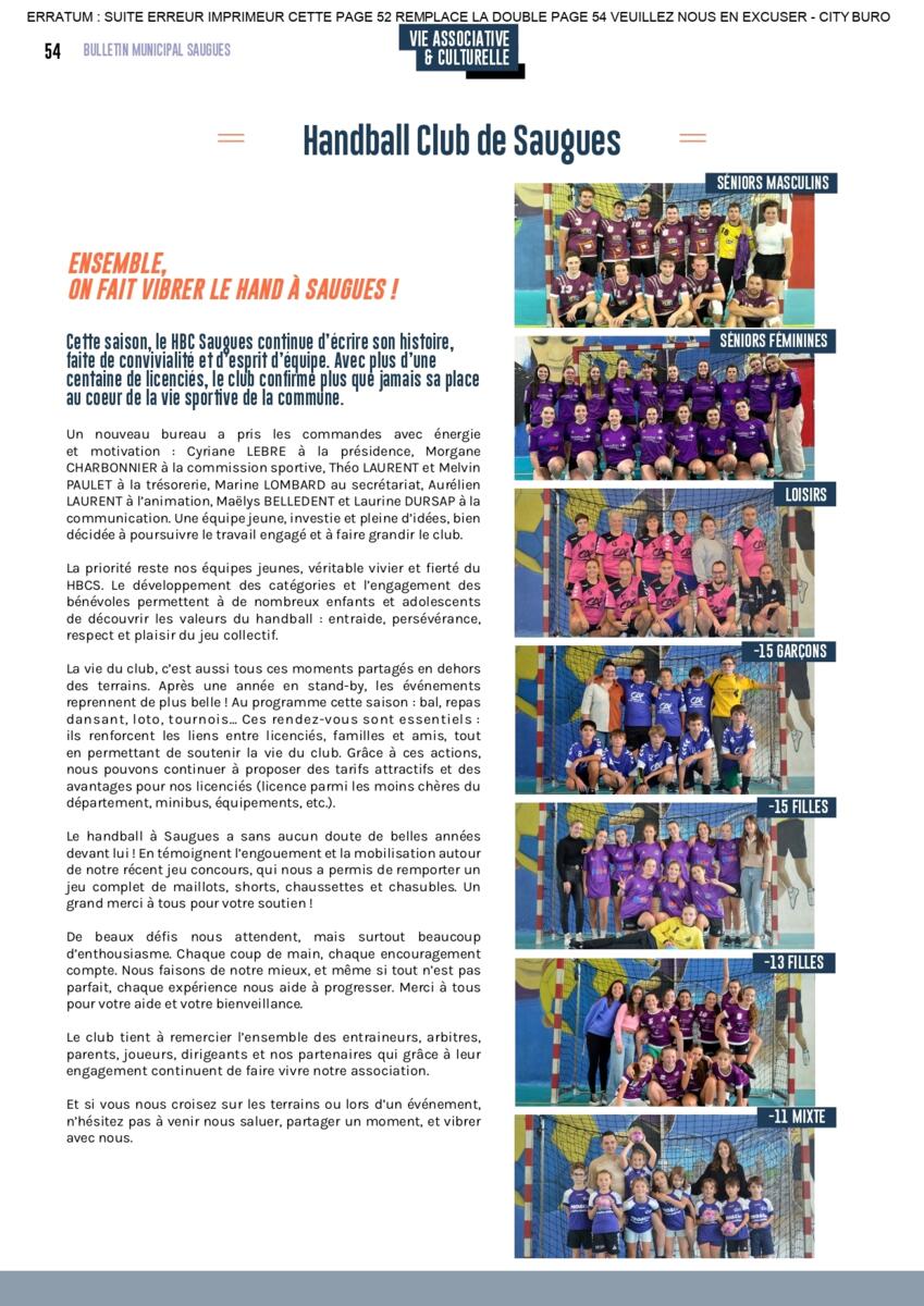 👉 L’article concernant « Le Handball Club de Saugues » est donc joint sur une feuille supplémentaire dans le bulletin.