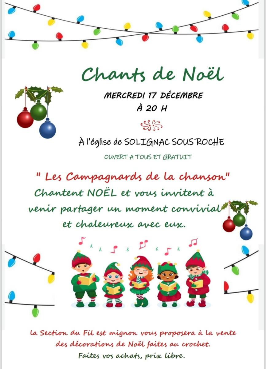 Chants de Noël le 17 décembre à 20h à l'église de Solignac