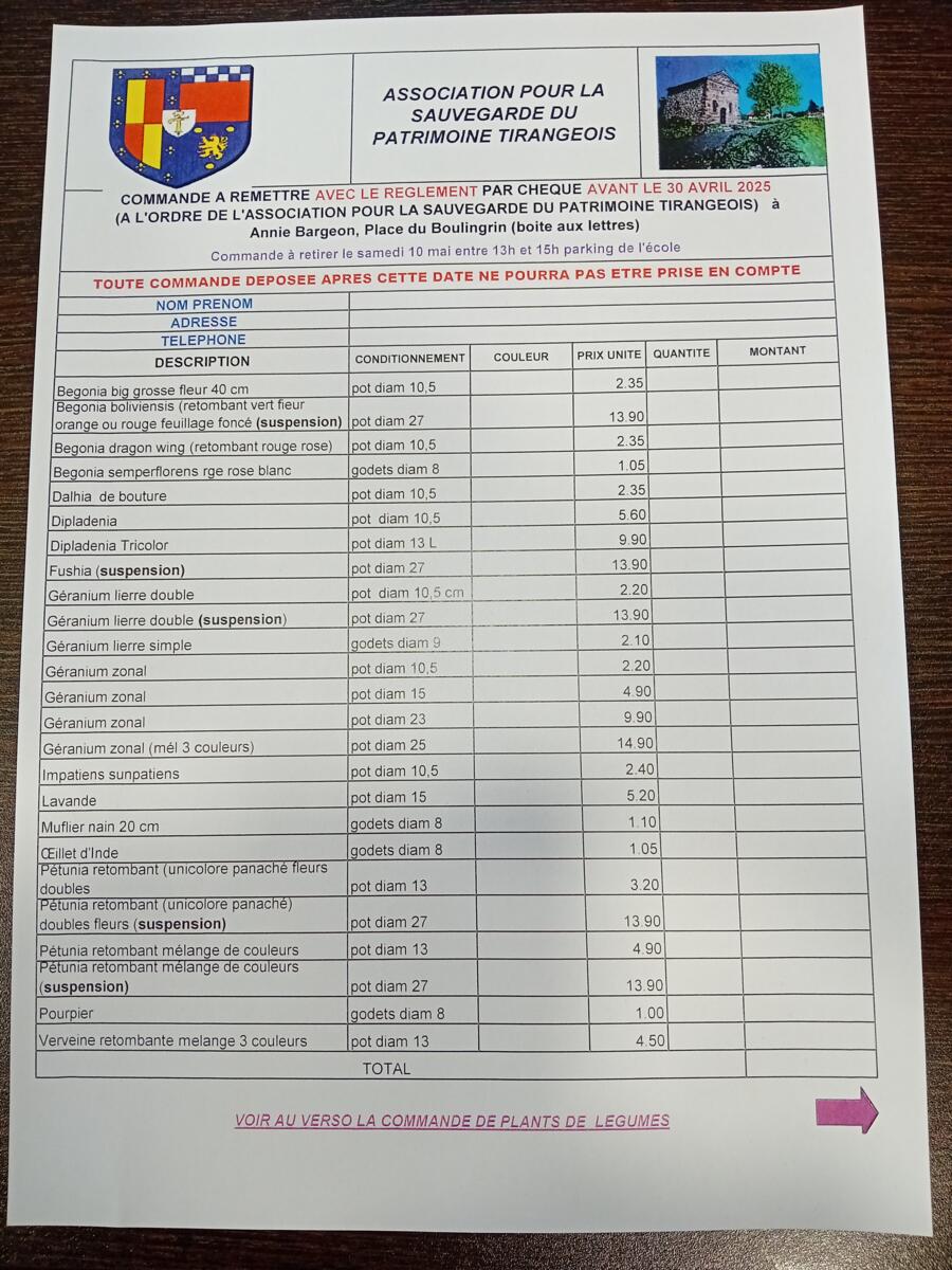 Les fascicules de commande sont disponibles au Tire en joie et à la mairie.