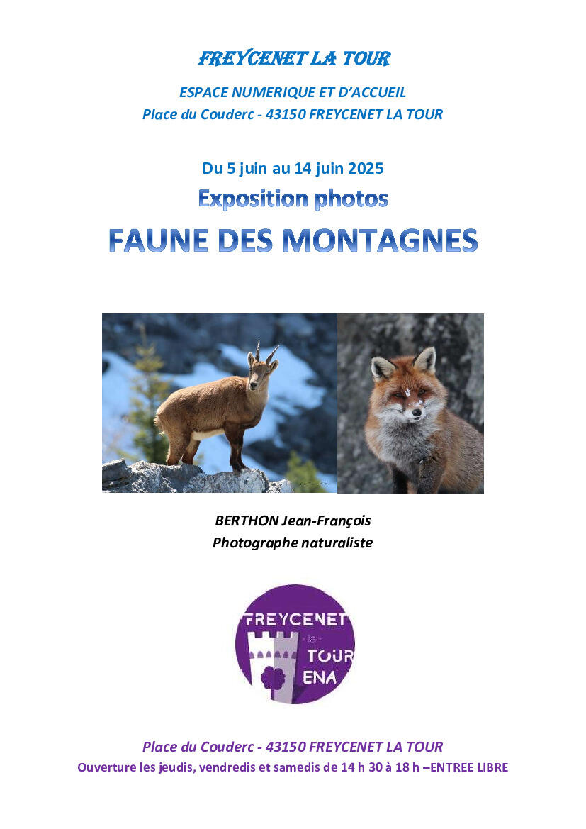 Du 5 au15 juin 2025 aura lieu une exposition photos de Jean-François BERTHON, photographe naturaliste. Celle-ci se tiendra à l’Espace Numérique de Freycenet la Tour.