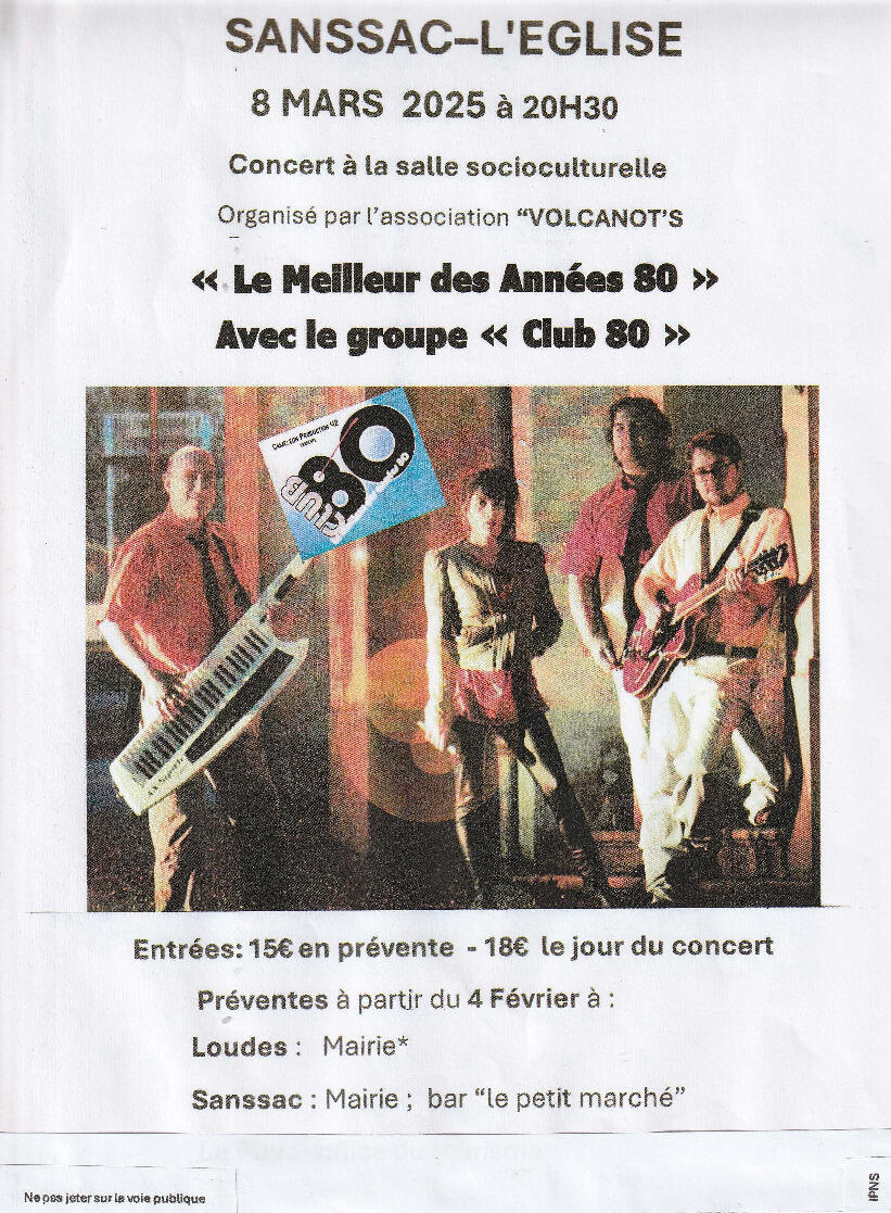 Concert à la salle socioculturelle de SANSSAC L-ÉGLISE
