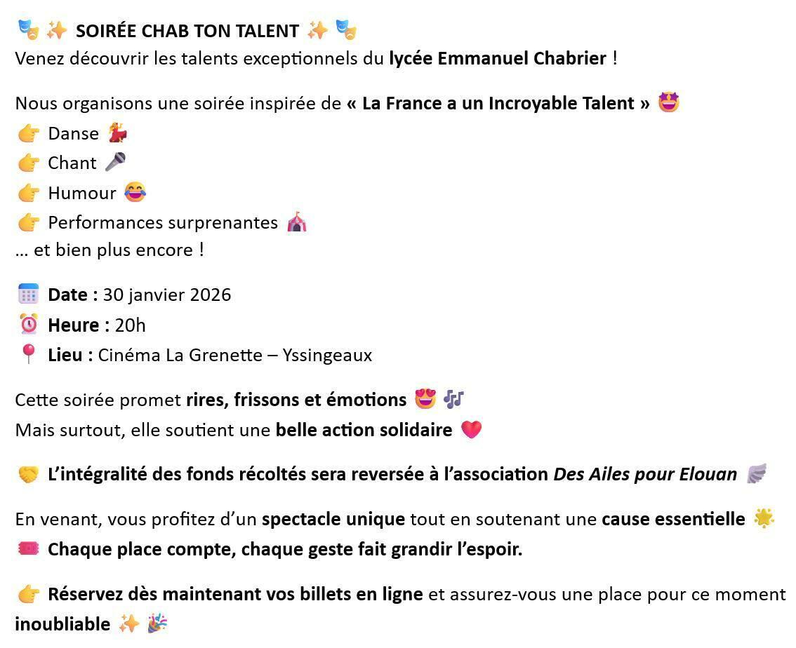 Venez découvrir les talents exceptionnels du lycée Emmanuel Chabrier !