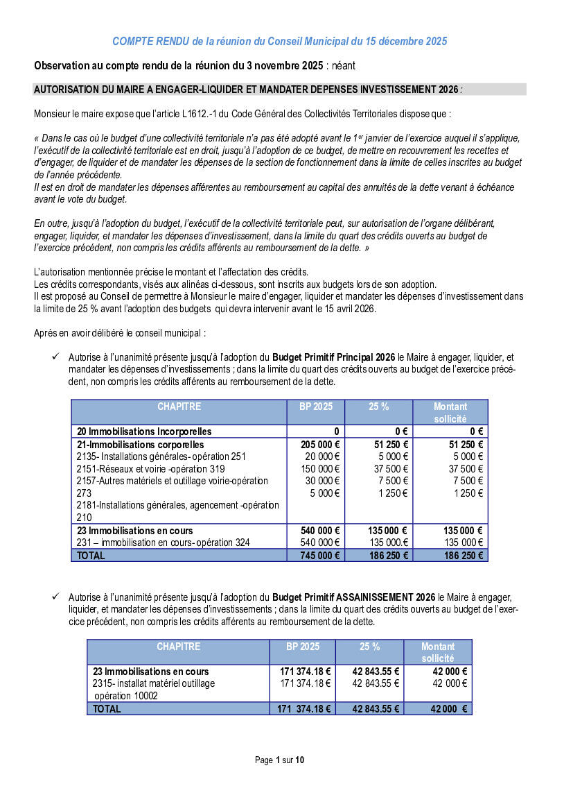 Su ayuntamiento / Noticias / COMPTE RENDU DERNIER CONSEIL MUNICIPAL