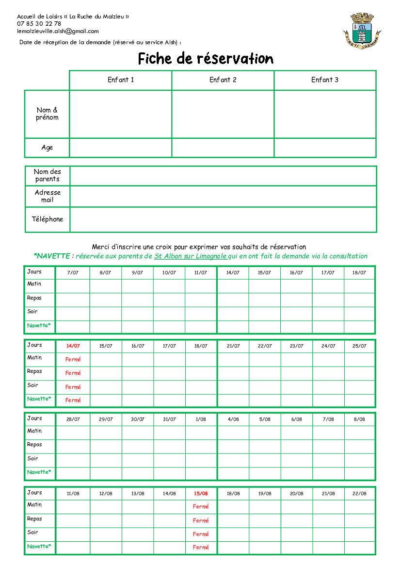 Infos ALSH du Malzieu Ville vacances scolaires été 2025