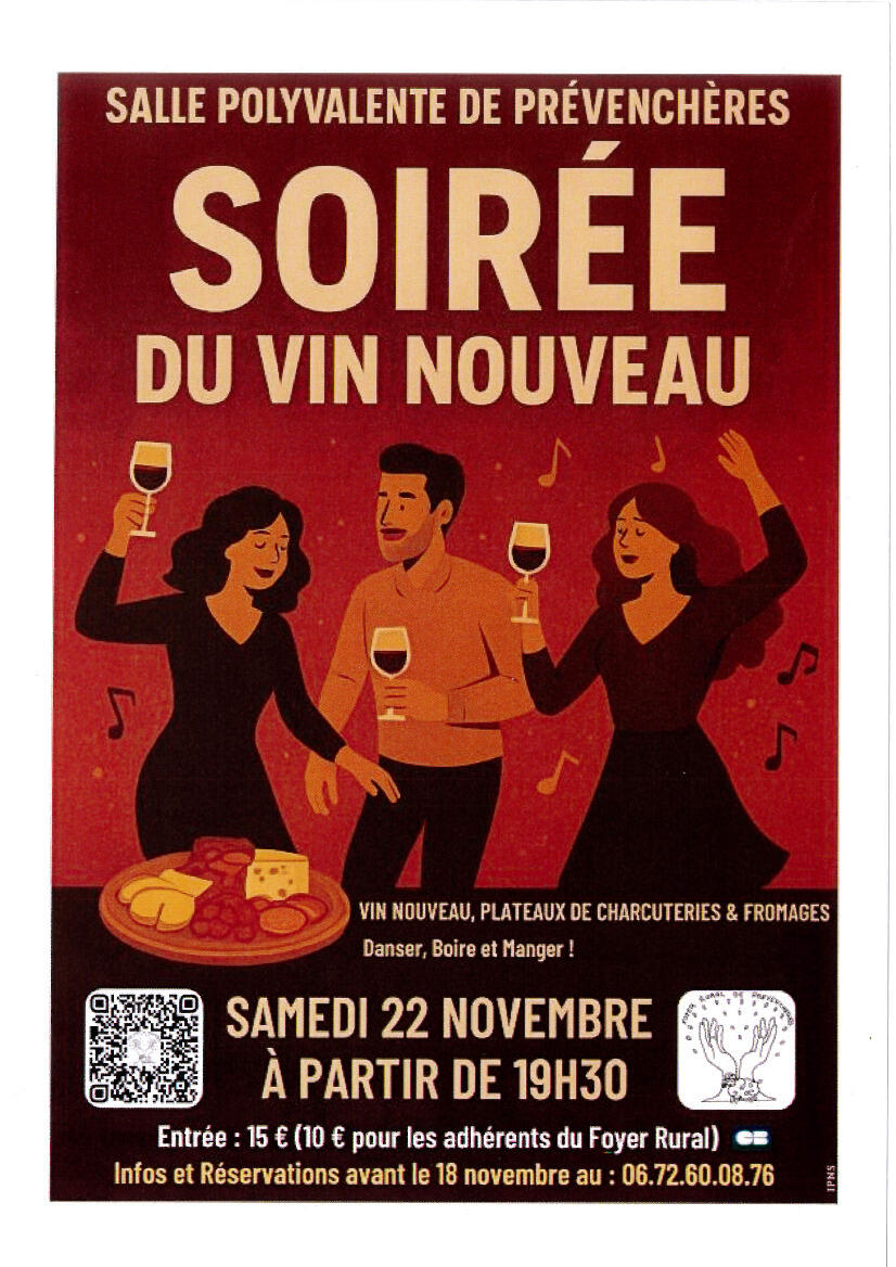 Soirée Vin Nouveau le samedi 22 novembre 2025 à partir de 19H30