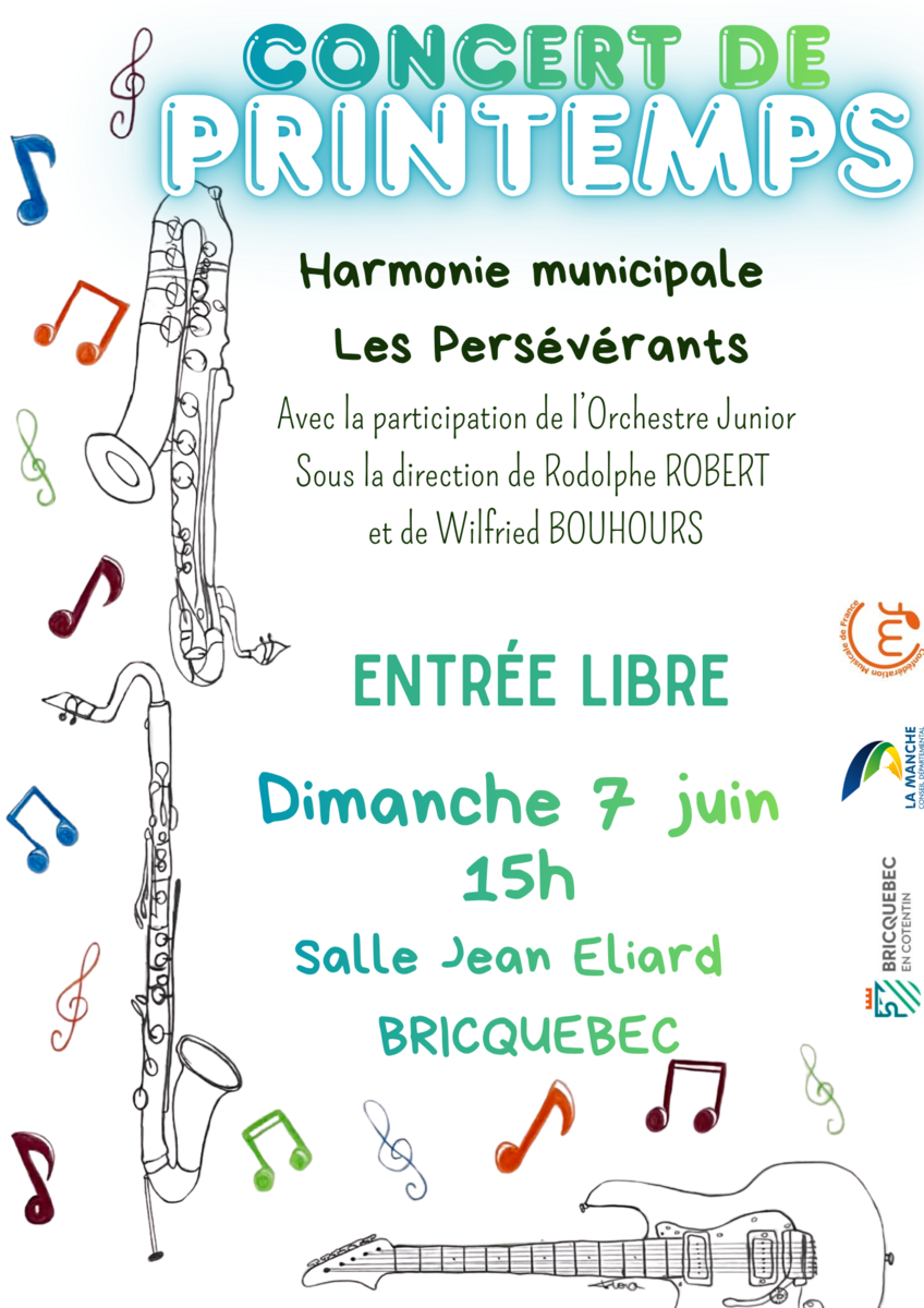 CONCERT DE PRINTEMPS École de musique de Bricquebec en Cotentin "Les Persévérants" 📆Dimanche 7 juin 2026 🕛15h00 📍Salle Jean Eliard