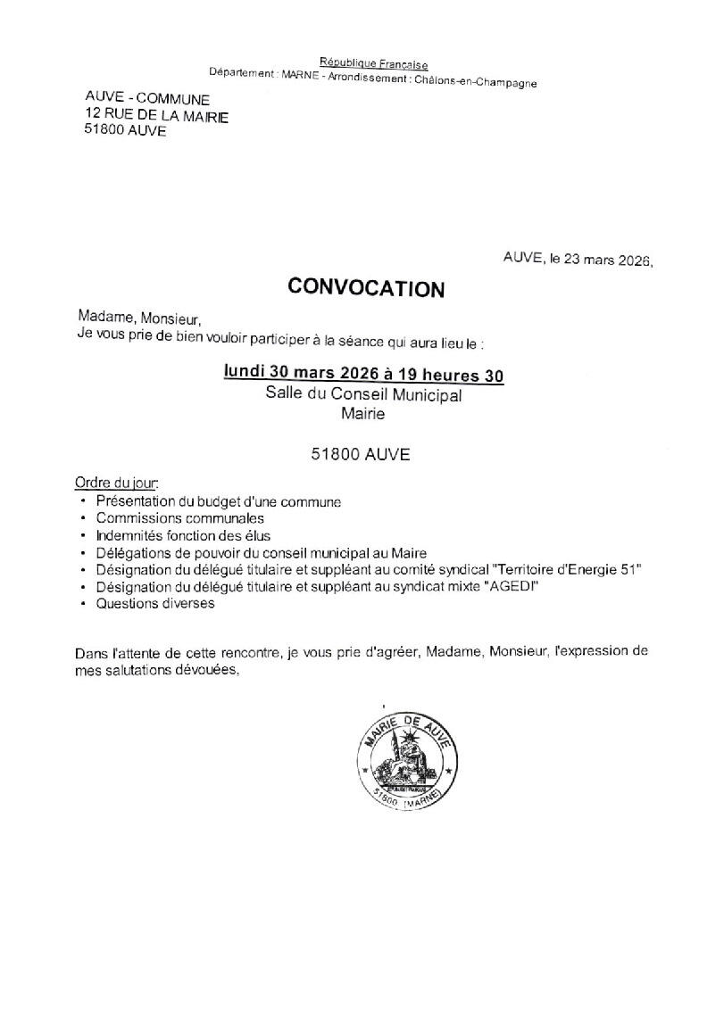 Convocation du 30 mars 2026