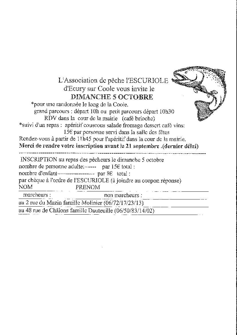 L'association de pêche L'Escuriole organise une randonnée et un repas le Dimanche 5 octobre.