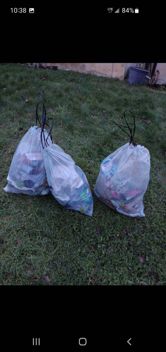 j'ai aperçu hier une famille qui ramassait des déchets éparpillés dans le village. (5 sacs ramassés) Merci à vous.