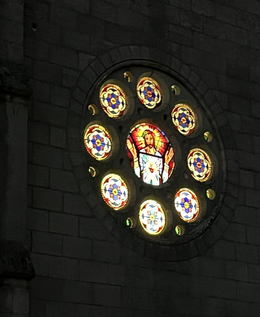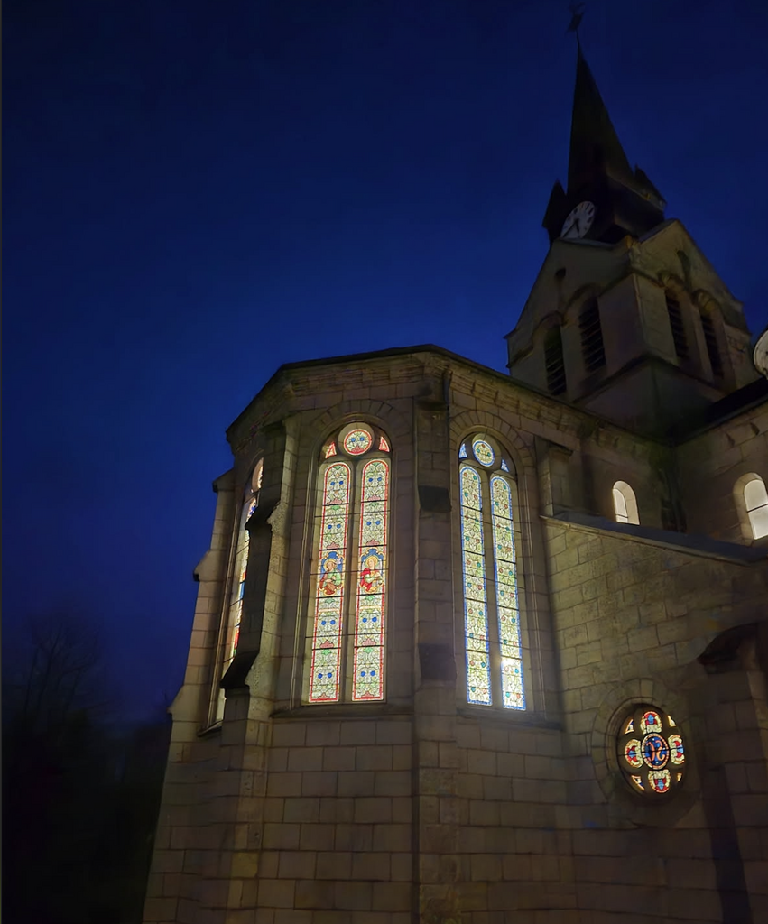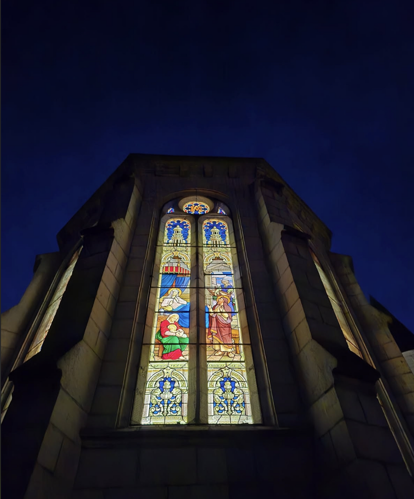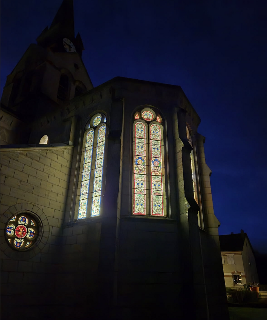 de nouveaux spots ont été installés pour éclairer les vitraux pendant les fêtes.