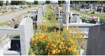👉 Nous rappelons à tous que l'entretien espaces entre les tombes revient aux familles et proches. Il est de votre responsabilité de prendre soin des concessions, y compris des bandes de 20 cm entre deux sépultures, appelées inter-tombes.
