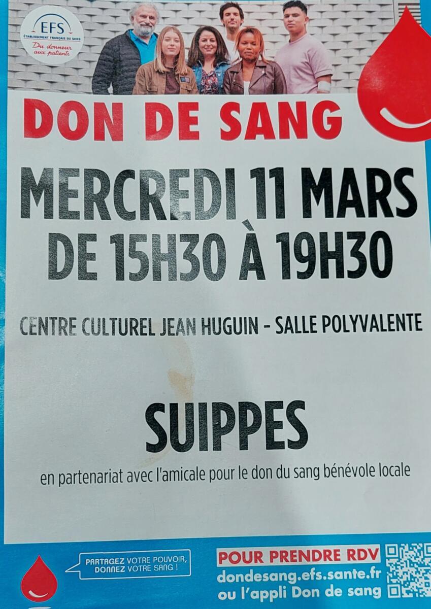 Don de sang 11 mars à Suippes