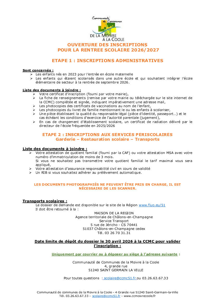 INSCRIPTION SCOLAIRE RENTRÉE 2026-2027