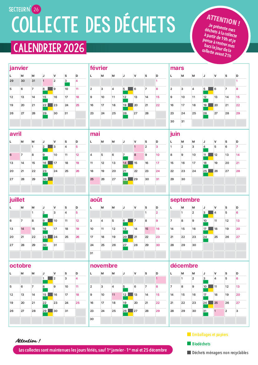 ERRATUM Calendrier 2026 de la collecte des ordures ménagères