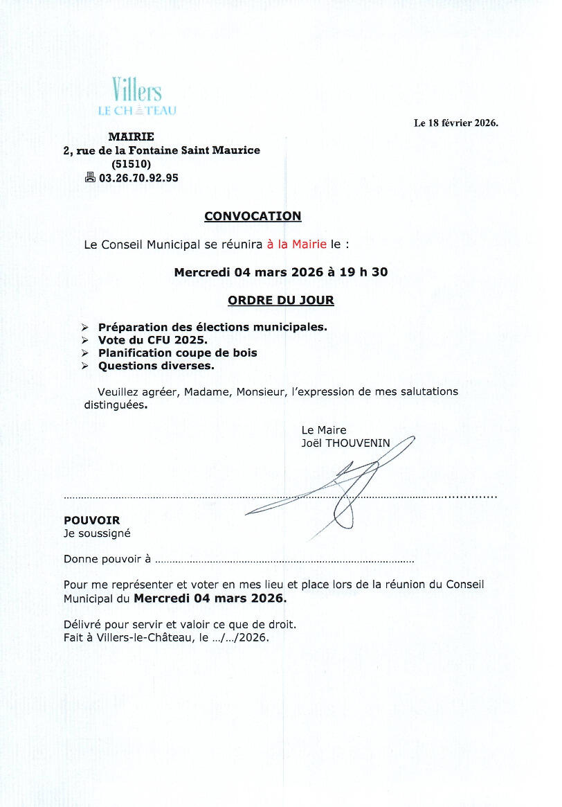CONVOCATION CONSEIL MUNICIPAL LE 4/3/2026