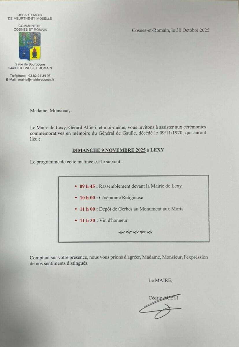 Cérémonie commémorative en mémoire du Général de Gaulle