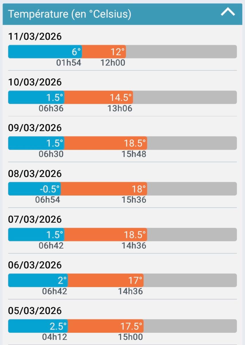 Petit point météo en ce jeudi 12 mars 2026, avec la météo heure par heure, une prévision sur quelques jours et un retour sur les derniers jours.