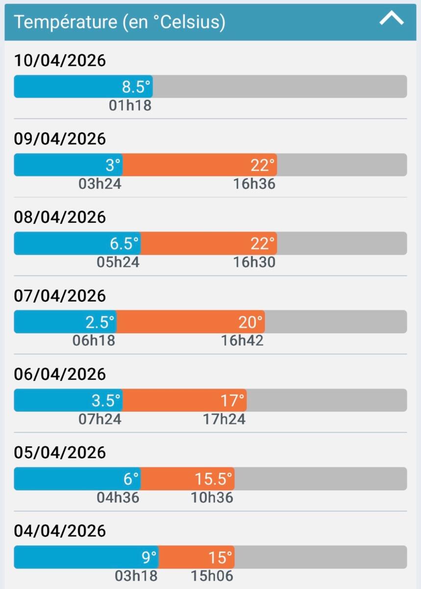 Petit point météo en ce samedi 11 avril 2026, avec la météo heure par heure, une prévision sur quelques jours et un retour sur les derniers jours.