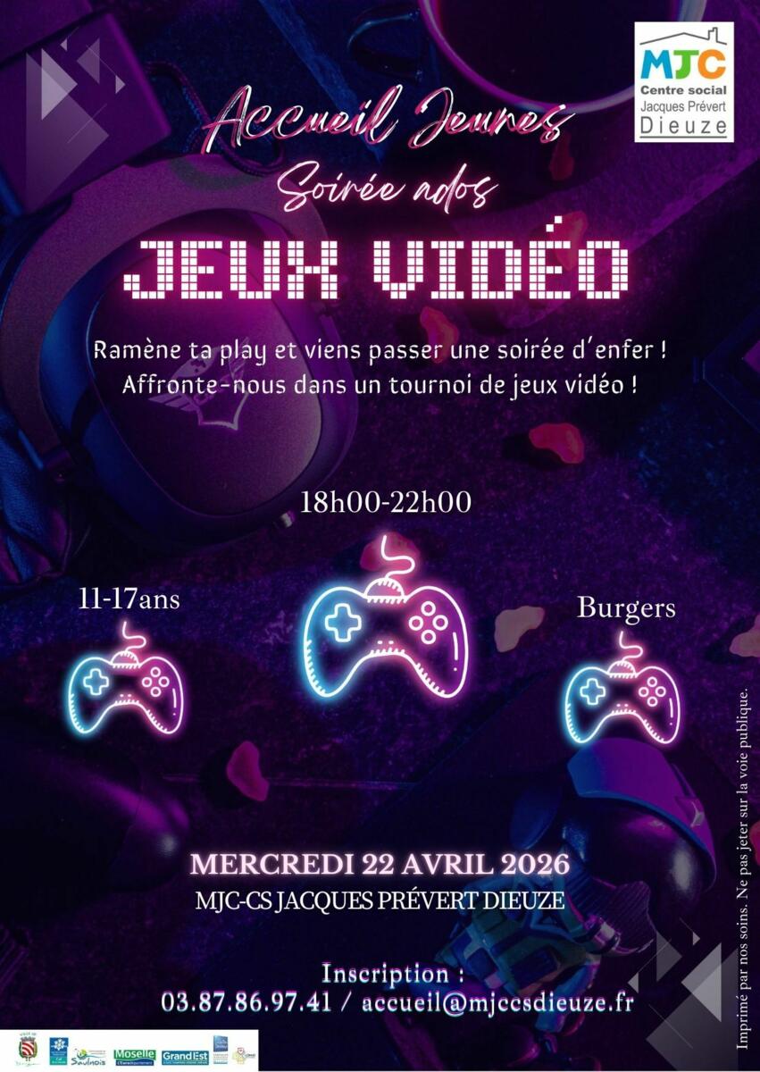 Soirée ados jeux vidéo mercredi 22/04 à 18h 🎮
