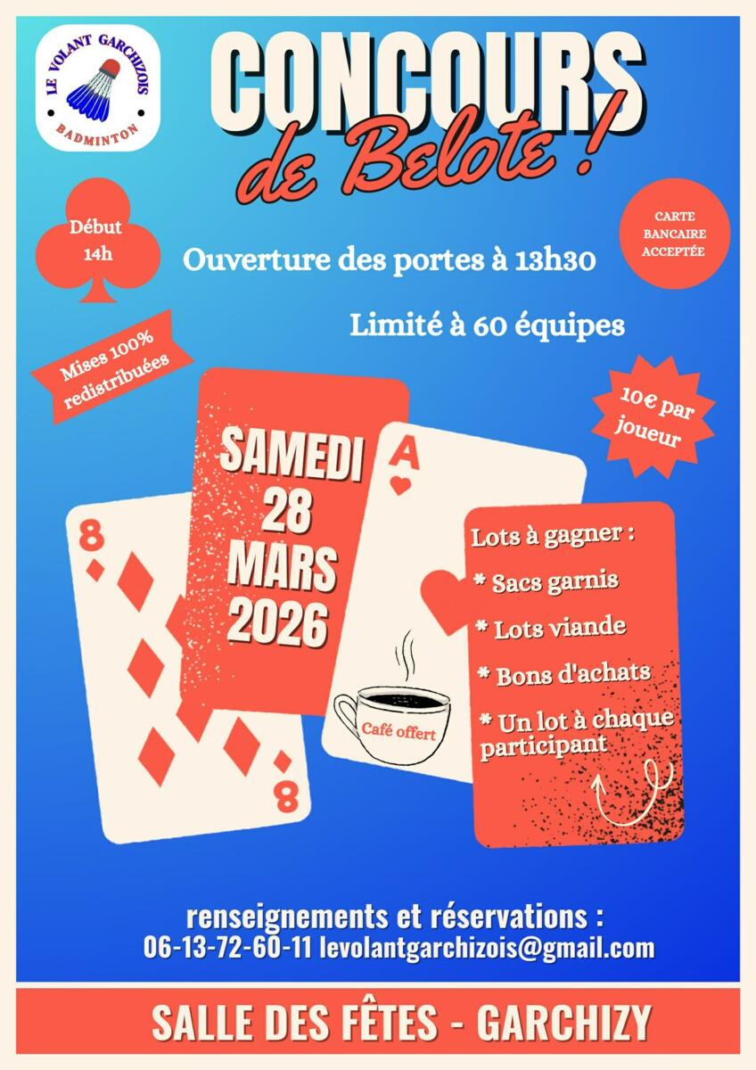L'association Le Volant Garchizois vous invite à son Concours de Belote !