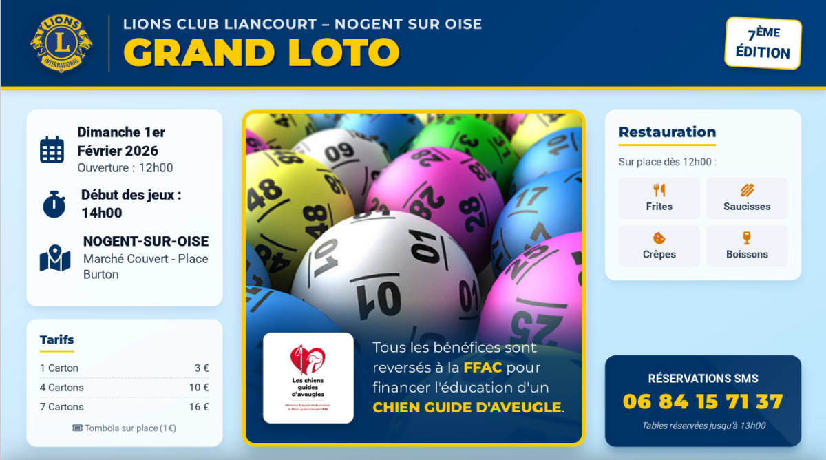 En participant à ce loto, vous soutenez la Fédération Française des Associations de Chiens guides d'aveugles.
