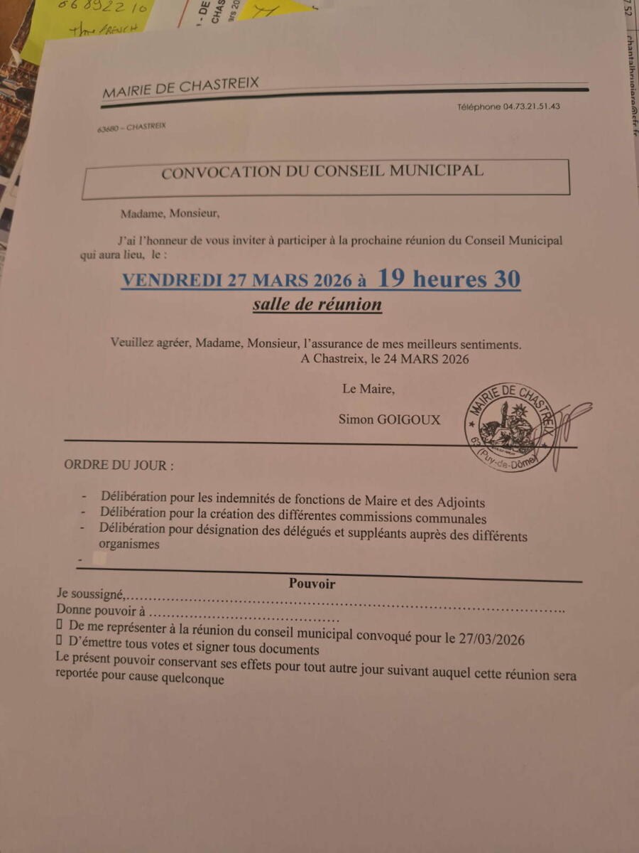 Prochaine réunion du conseil ce vendredi 27 mars à 19h30.