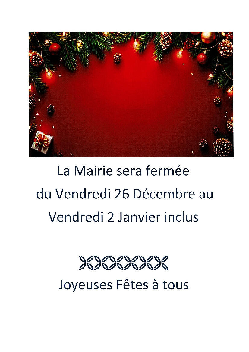 FERMETURE SECRÉTARIAT DE MAIRIE