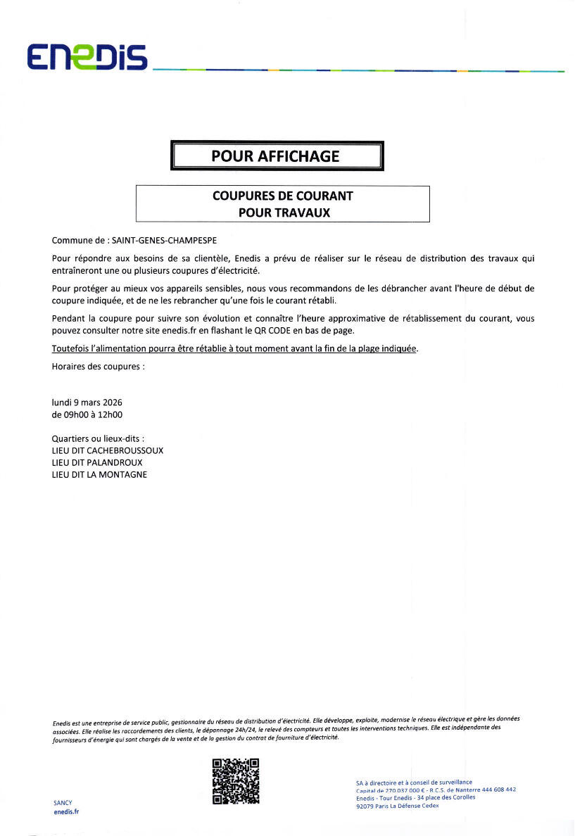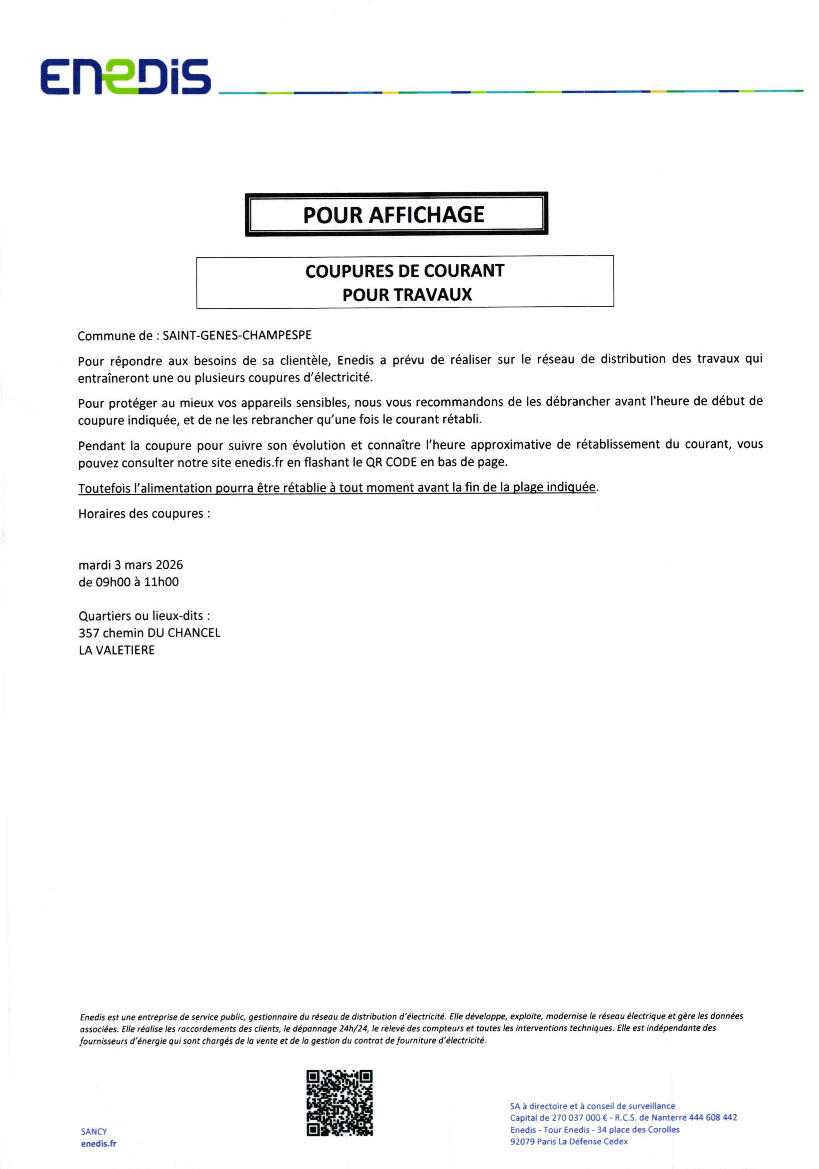🚧Coupure de courant pour travaux le 03 03 2026🚧.