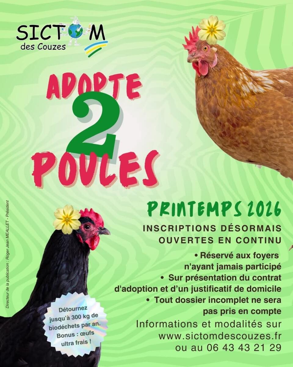 * Retrouvez le contrat d'adoption ici : https://sictomdescouzes.fr/la-prevention/operation-adopte-une-poule/