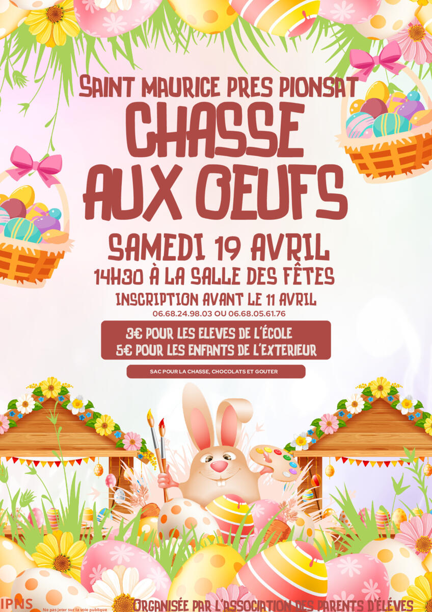 L'APE organise sa traditionnelle chasse aux oeufs de Paques le samedi 19 avril à 14h30.
